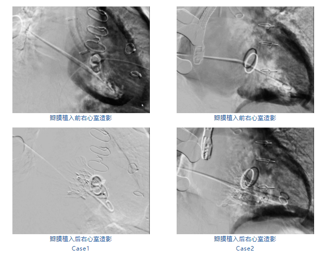 經(jīng)右側(cè)胸部微小切口,郭惠明教授團隊將輸送器經(jīng)右房路徑,通過三尖瓣順利送入右心室,在DSA及超聲指導(dǎo)下精準地控制輸送系統(tǒng)釋放瓣膜,在超聲和DSA確認無瓣周漏及瓣膜系統(tǒng)穩(wěn)定性良好后進行室間隔錨定。2例瓣膜置換過程均僅耗時10分鐘,術(shù)后超聲和造影顯示瓣膜位置形態(tài)良好,幾乎無返流。