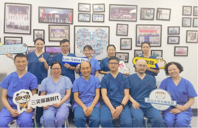 2022年5月27日,四川大學(xué)華西醫(yī)院心臟內(nèi)科陳茂、馮沅教授帶領(lǐng)的瓣膜病介入治療多學(xué)科團(tuán)隊(duì),在國(guó)內(nèi)首次采用純介入方式通過(guò)穿刺右側(cè)頸靜脈成功完成經(jīng)導(dǎo)管三尖瓣置換。植入的人工瓣膜是具有中國(guó)自主知識(shí)產(chǎn)權(quán)的LuX-Valve Plus系統(tǒng)。術(shù)中上海長(zhǎng)海醫(yī)院陸方林教授和喬帆副教授給予了在線支持。