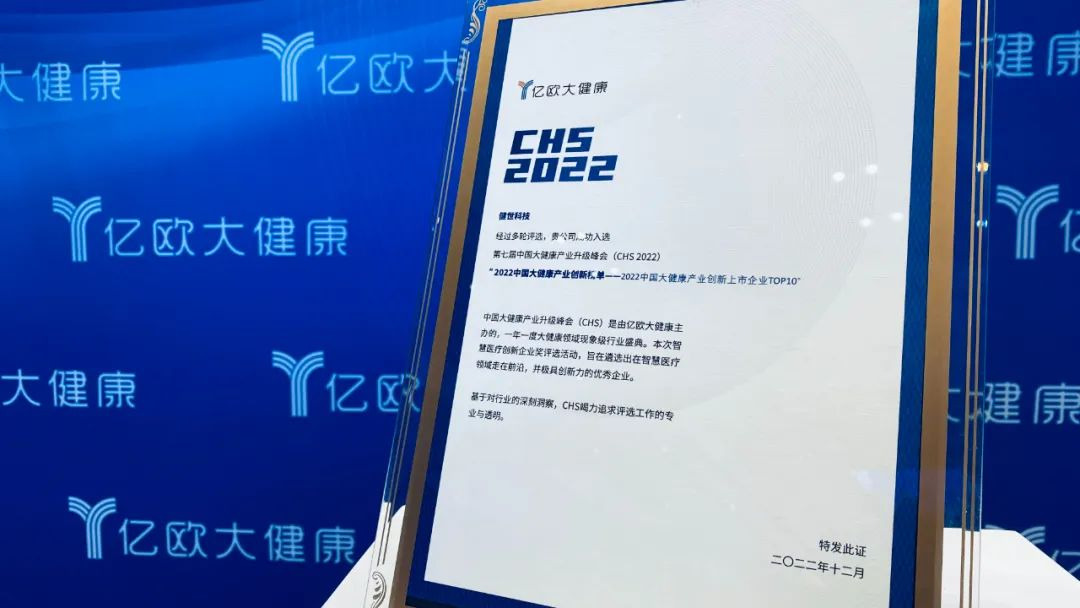 12月29日,寧波健世科技股份有限公司(”健世科技“)在第七屆中國(guó)大健康產(chǎn)業(yè)升級(jí)峰會(huì)(CHS2022)年度盛典獲評(píng)”2022中國(guó)大健康產(chǎn)業(yè)創(chuàng)新上市企業(yè)TOP10“。