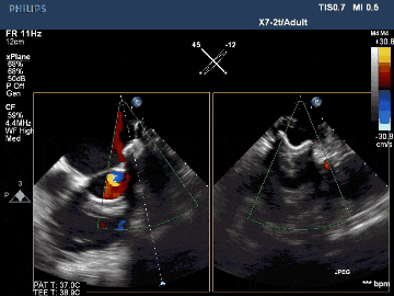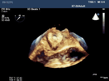 術(shù)后TEE三維重建影像示封堵器位置佳,封堵完全