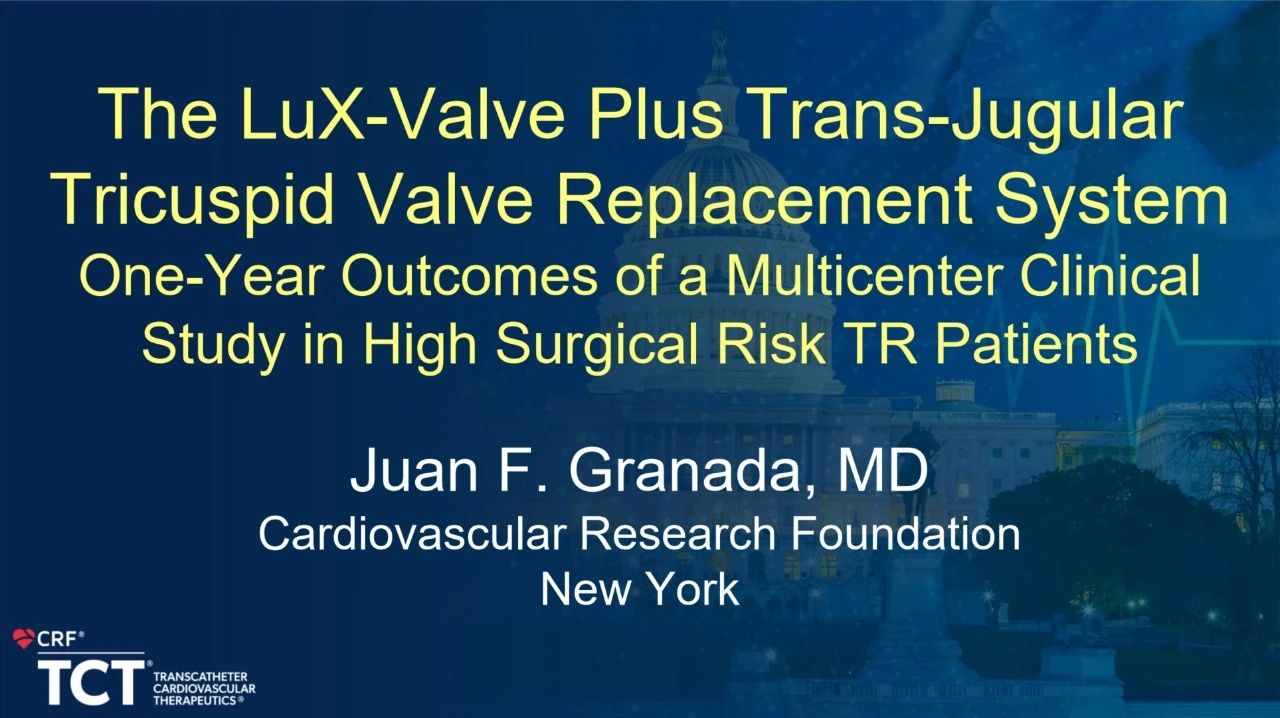 10月29日,本次 TCT 2024 會議的結(jié)構(gòu)心日程中,來自美國心血管研究基金會(Cardiovascular Research Foundation, New York, U.S.)的Juan F. Granada教授攜手中山醫(yī)院葛均波院士團(tuán)隊(duì)一同正式公布了 LuX-Valve Plus TRAVEL II 確證性臨床研究的1年期試驗(yàn)結(jié)果。