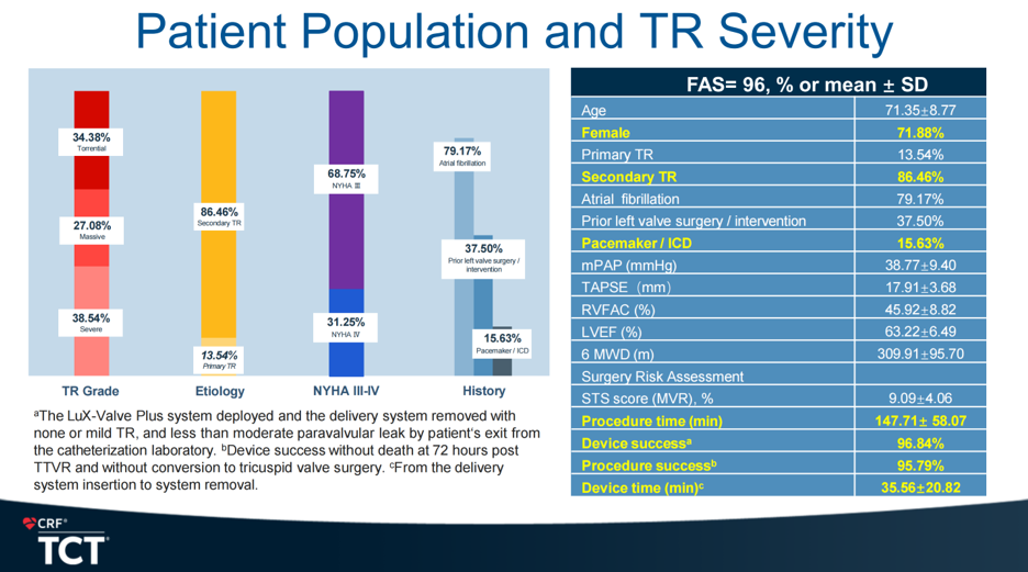 近期,LuX-Valve Plus在2024美國經(jīng)導(dǎo)管心血管治療學(xué)術(shù)會議(TCT 2024)上,正式全球公布了TRAVLE II 臨床試驗(yàn)研究1年期隨訪結(jié)果,這是繼今年6月紐約瓣膜會(New York Valves 2024)6個(gè)月隨訪結(jié)果公布后的再一次重磅成果分享,展示了經(jīng)導(dǎo)管三尖瓣介入置換領(lǐng)域的重大研究發(fā)現(xiàn),其結(jié)果令人矚目。