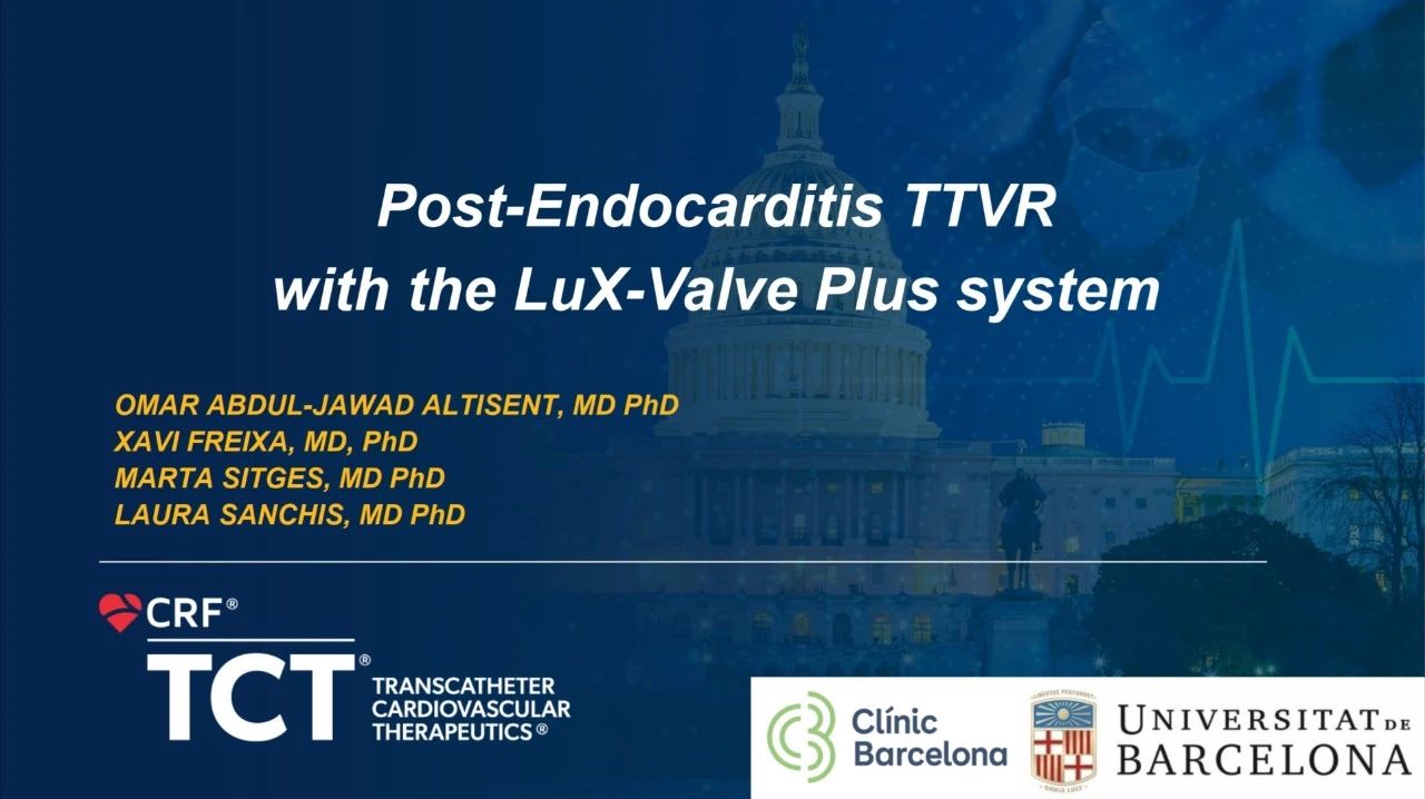 除了公布1年期數(shù)據(jù)以外,來自巴塞羅那臨床中心醫(yī)院(Clinic Barcelona)的Omar Abdul-Jawad Altisent博士還進(jìn)行了一個(gè)病例報(bào)告的分享。一名 59 歲男性患者有高血壓、肥胖、A型肝炎,永久性房顫等病史,同時(shí)患有三尖瓣心內(nèi)膜炎伴隨三尖瓣返流,右心衰,膿毒性肺栓塞,肺氣腫并需要長期待在 ICU。根據(jù)巴塞羅那臨床中心醫(yī)院治療三尖瓣返流的規(guī)則,因?yàn)椴荒芙邮艿母唢L(fēng)險(xiǎn)患者首先拒絕了開胸手術(shù)這個(gè)選項(xiàng);隨后在評估是選擇修復(fù)還是置換路徑的時(shí)候,由于患者瓣環(huán)擴(kuò)張嚴(yán)重而且中間有較大開口,因此在CT評估決定后,該中心選擇 LuX-Valve Plus 系統(tǒng)進(jìn)行三尖瓣置換手術(shù)。術(shù)后 30天隨訪顯示,所有功能性和生活質(zhì)量指標(biāo)都有提升,心功能從原來的 NYHA III 級回到 I/II 級,KCCQ 評分提升37分;6個(gè)月期隨訪數(shù)據(jù)顯示心功能改善至 NYHA I 級,KCCQ 評分提升42分。最后,Omar博士總結(jié)道,這是第一例成功用于患有心內(nèi)膜炎,嚴(yán)重?zé)o菌性贅生物以及晚期右心衰竭的患者的經(jīng)皮的三尖瓣置換手術(shù)。LuX-Valve Plus 獨(dú)特的設(shè)計(jì),包括室間隔錨定,40-70mm可選的多樣型號,讓這款產(chǎn)品能應(yīng)對各種非常挑戰(zhàn)的三尖瓣解剖結(jié)構(gòu)。