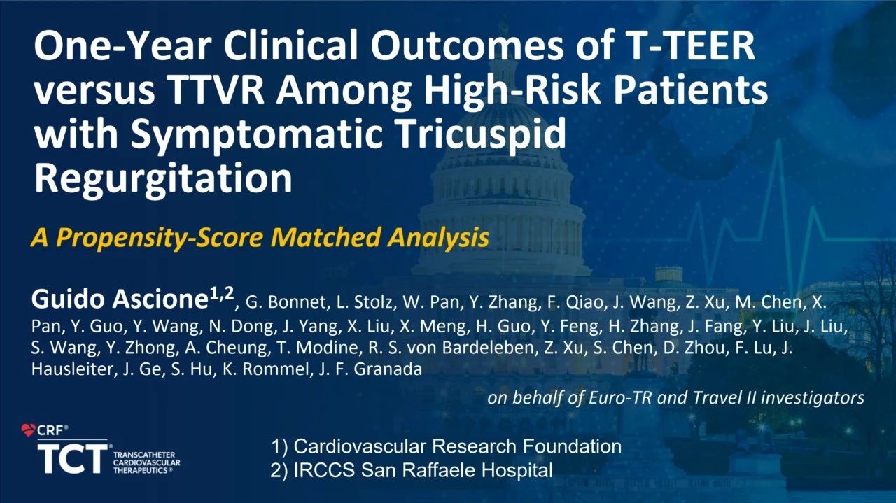 來自美國心血管研究基金會(Cardiovascular Research Foundation, New York, U.S.)的Guido Ascione博士進(jìn)行了一項(xiàng)有癥狀的三尖瓣返流高?;颊逿-TEER與TTVR的一年臨床結(jié)果:傾向評分匹配分析,他在分析后發(fā)現(xiàn),三尖瓣置換(TTVR)相對于緣對緣修復(fù)(T-TEER)有著更高的手術(shù)成功率,且一年后的臨床結(jié)果和功能評分中,置換和緣對緣相比并無統(tǒng)計(jì)學(xué)差異。
